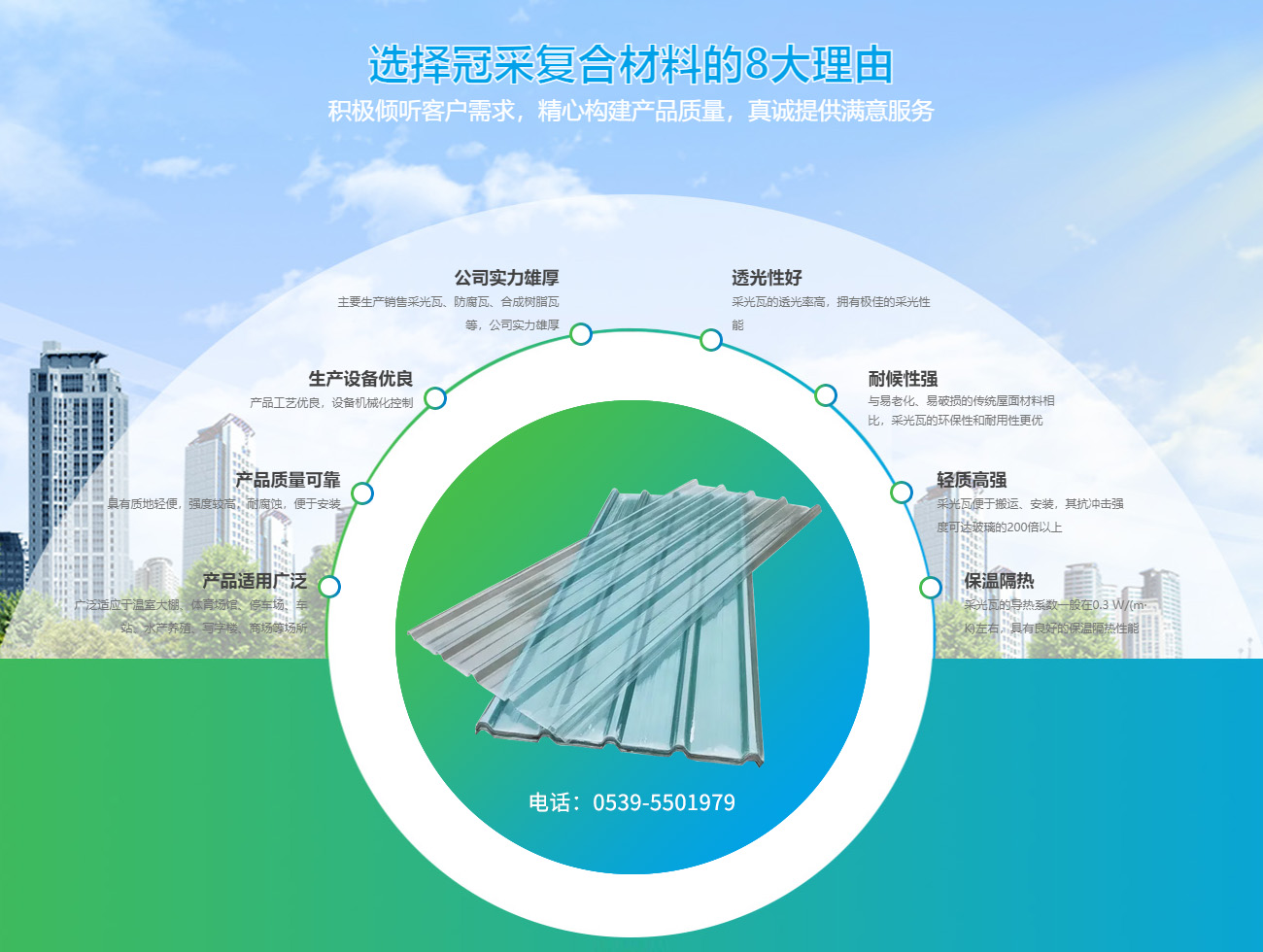 臨沂市冠采復合材料有限公司位于羅莊區沂堂工業園,本廠現引進國外全套FRP透明采光板連續(xù)生產設備,全程電腦操控具有連續(xù)成型,無限延長,隨意著色,綠色環(huán)保等特點。